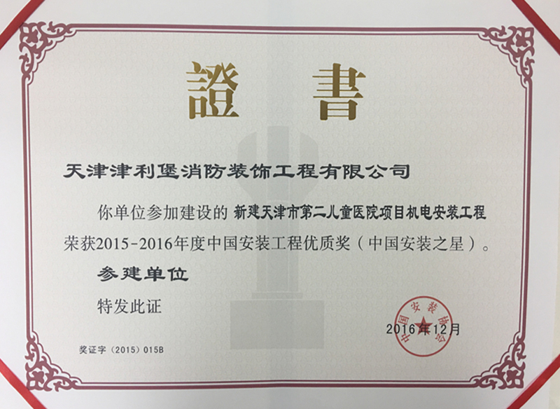 公司承接了包括寫字樓、綜合樓、酒店、商場、金融保險、醫療教育、飛機制造、軌道交通、工業企業等一大批具有社會影響力的工程項目,如:天津津匯廣場、天津泰達現代服務產業區G2地塊(泰達MSD-C區)、濱海文化商務中心、天津高銀117大廈、天津濱海喜來登酒店、天津天河城購物中心、天津市第二兒童醫院、空客A320、A330項目、新一代運載火箭產業化基地項目、津濱快速輕軌工程、天津地鐵一、二、六號線工程、天津濱海國際機場二期擴建工程項目機場工程T2航站樓、北京新機場停車樓及綜合服務樓、天津平安泰達金融中心以及天津一汽豐田汽車有限公司新能源工廠建設消防工程等項目,積累了豐富的施工及管理經驗,多次贏得業主的認可和表彰,并有7項參建工程獲得天津市建設工程“海河杯”獎、有6項參建工程獲得天津市建設工程“金獎海河杯”獎、有3項參建工程獲得“國家優質工程獎”、有15項參建工程獲得中國建設工程“魯班獎”、有2項參建工程獲得“中國安裝之星”優質獎、1項參建工程獲得北京市建筑長城杯工程金質獎。同時被中國消防協會評定為AAA信用等級企業。公司以卓越的工程品質和全方位的服務得到了社會各界的好評,在同行業中享有較高的信譽。